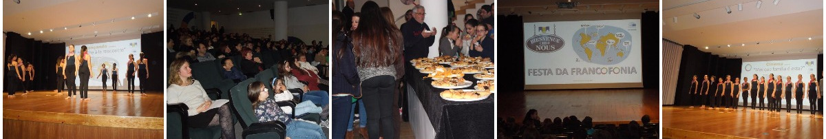 O átrio da entrada da escola foi ornamentado com motivos alusivos à efeméride: Les dix – motssurlaToile” e as bandeiras dos países francófonos.