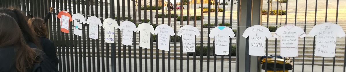 A forma que encontraram para melhor chegar à população escolar e à comunidade em geral foi a construção de um “estendal” com camisolas de cartão, exibindo frases sobre a paz e a importância de dizer não a qualquer tipo de violência. Esse trabalho foi executado no Domínio de Articulação Curricular (DAC), com o apoio dos professores orientadores, Nelson Silva, Maria do Céu Brandão, Vera Silva e Conceição Brandão. O estendal foi pendurado na entrada principal da escola sede do agrupamento.