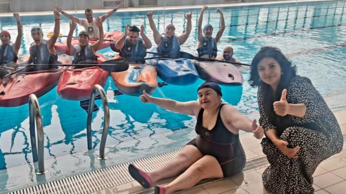 Os utentes do CAO, acompanhados pela professora Cláudia Silva, procuraram a modalidade de canoagem como uma forma diferente de realizarem a sua prática de atividade física.