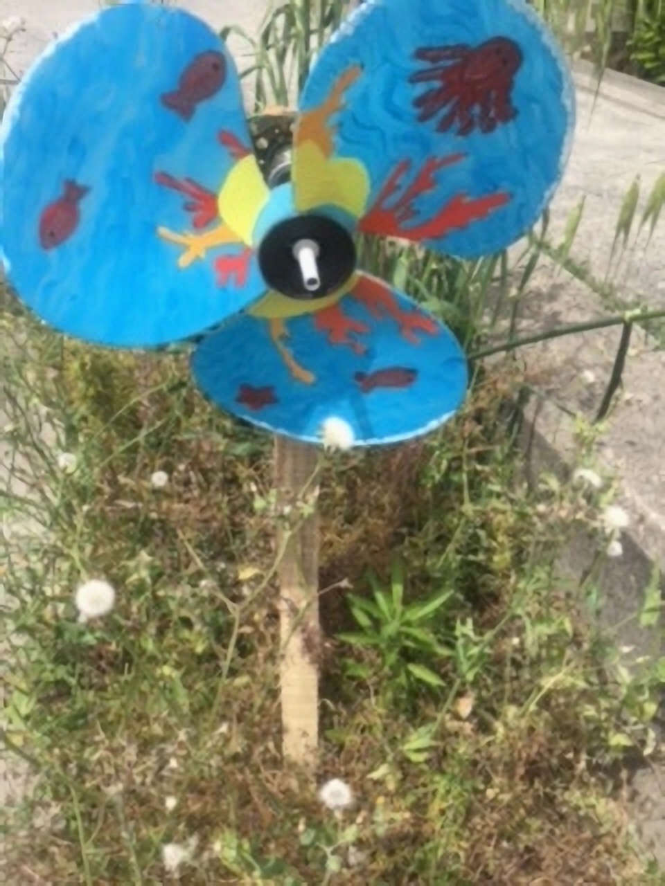 Em seguida, os alunos do 8º F distribuíram os vira-ventos pelo recinto escolar, simbolizando o reaproveitamento de materiais e a importância da energia renovável.