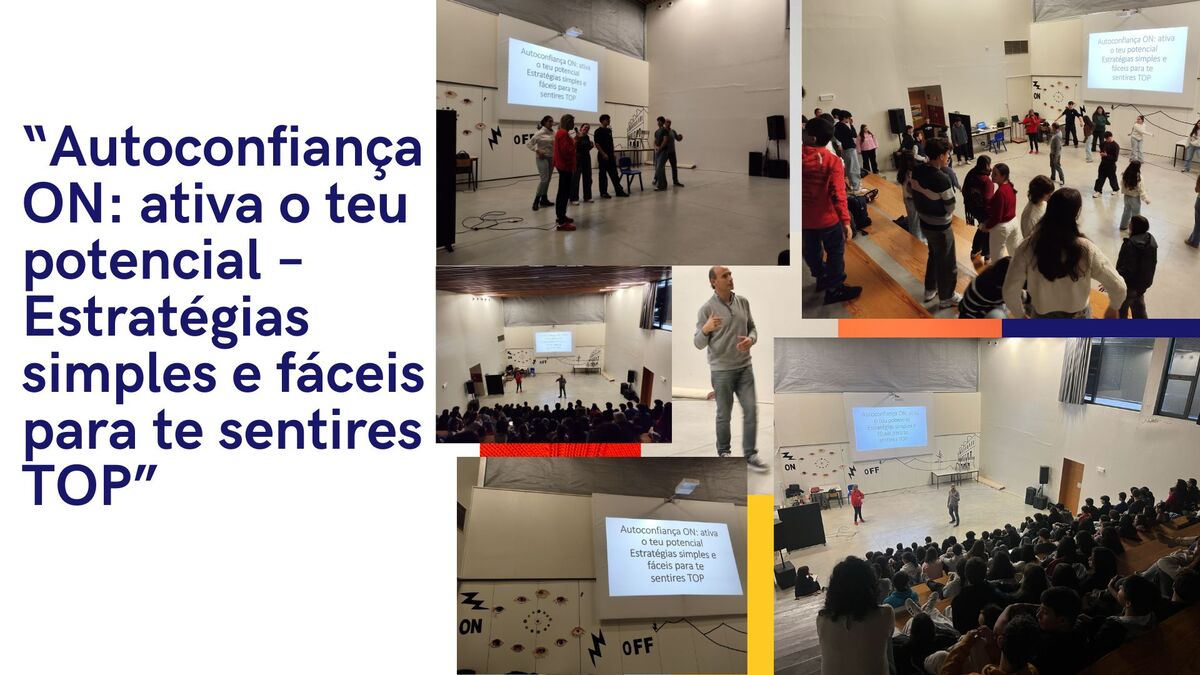 Durante cerca de 1h os alunos exploraram o tema da autoconfiança de forma envolvente e prática. Através de desafios em grupo, atividades de movimento, momentos de reflexão e partilha positiva, aprenderam como o cérebro aprende a confiar, como ativar o “modo ON” e valorizar as suas forças pessoais.