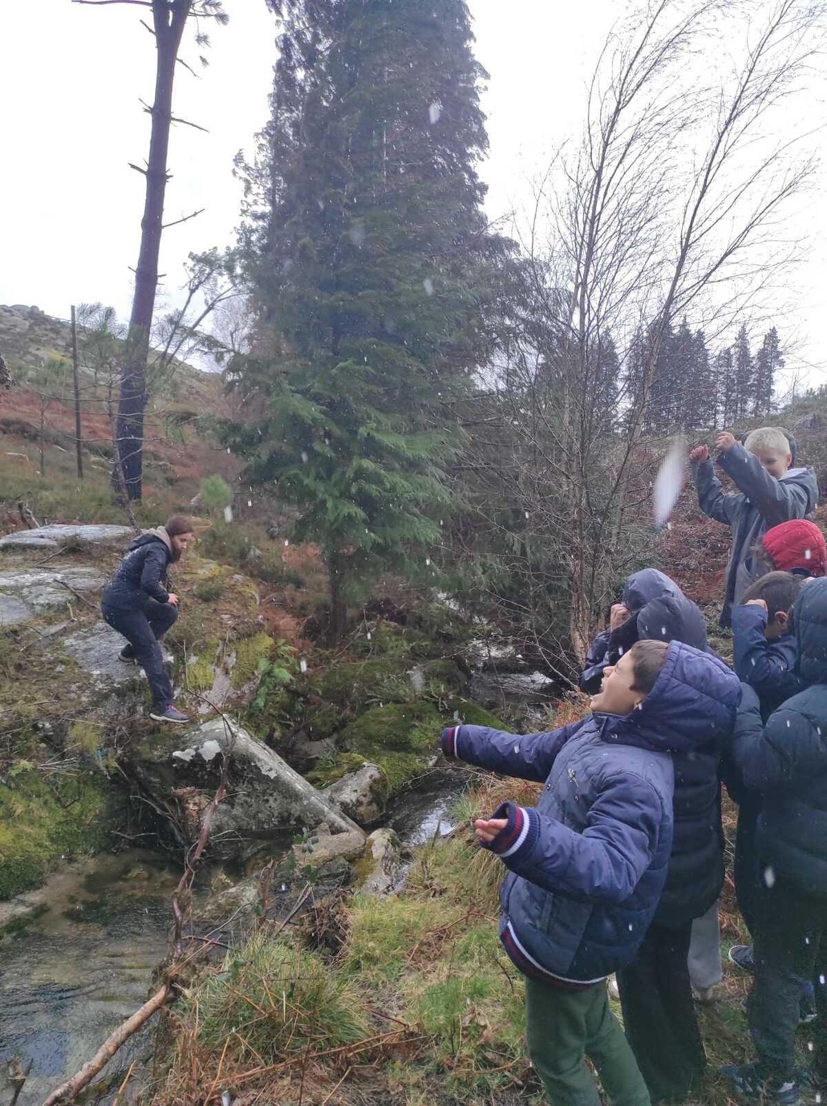 Apesar do tempo estar um pouco instável, com alguma chuva e vento frio, os alunos conseguiram conhecer, entre rochas e zonas húmidas, duas espécies muito especiais: a andrea (Andreaea frigida), um musgo raro e em perigo de extinção, que cresce sobre rochas salpicadas pela água dos rios, que dá o nome à sua sala de aula, e a orvalhinha (Drosera rotundifolia), uma fascinante planta insetívora que vive nas turfeiras sobre o esfagno, e que dá o nome a um dos corredores da escola.