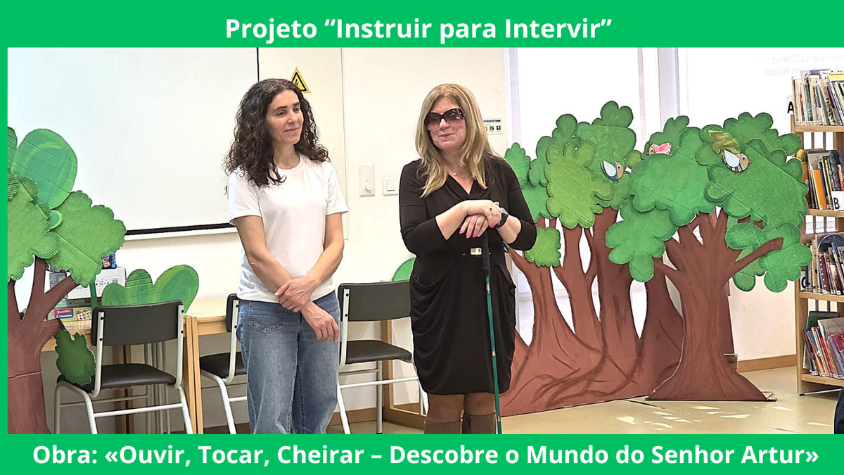 Teresa Vaz da AAICA (Associação de Apoio à Informação a Cegos e Amblíopes) e a professora e escritora Isabel Gonçalves dinamizaram a primeira sessão do projeto “Instruir para Intervir”, no dia 11 de março de 2026, na biblioteca do Polo Escolar de Rossas.