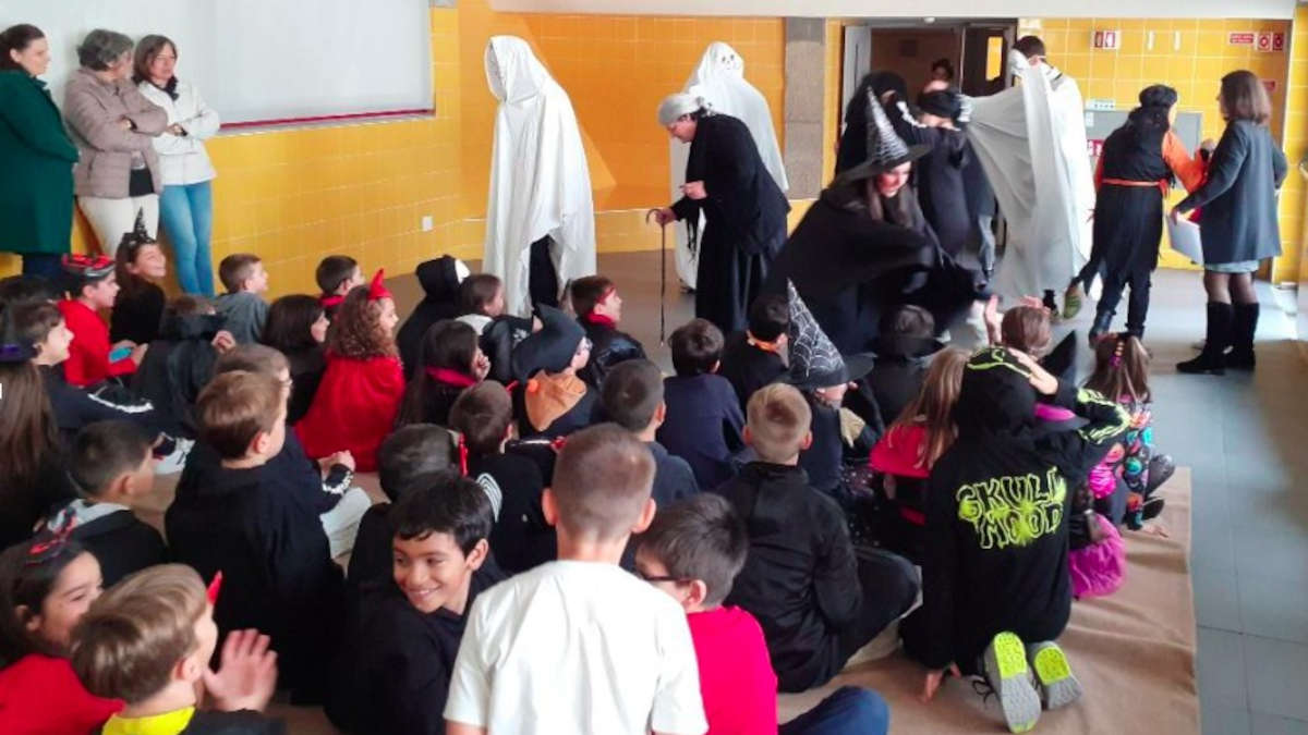 Recebemos a visita dos utentes do CAO do Patronato, que nos presentearam com uma encenação da origem do Halloween. No final ofereceram aos alunos uma “doçura” em forma de fantasma e lançaram-lhes um desafio: escreverem ou desenharem no paninho que envolvia o fantasminha, palavras e/ou motivos relacionados com o Halloween. O produto desta atividade foi exposto num mural, no átrio da escola.