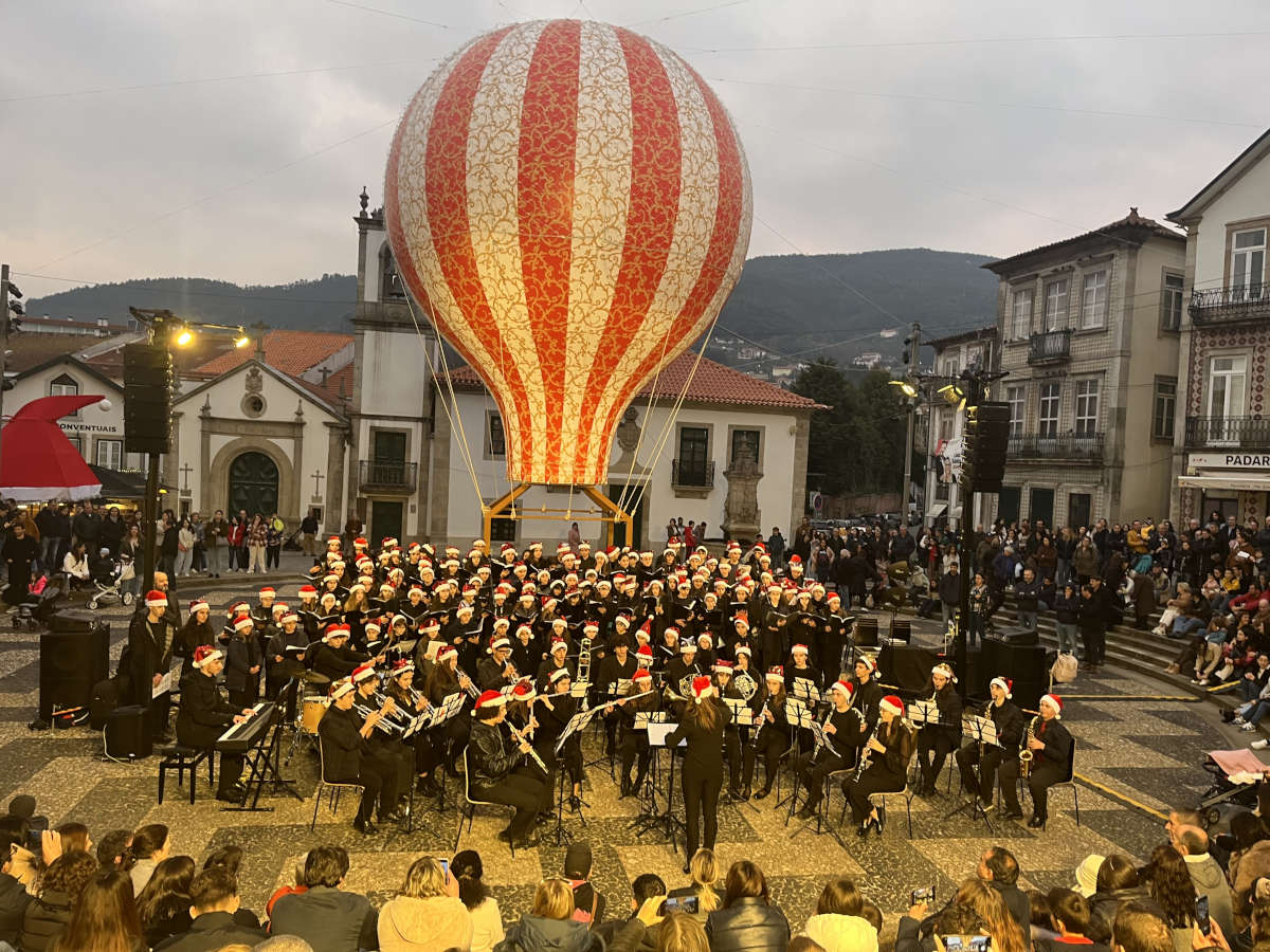 O final de tarde do último domingo, 26 de novembro, foi momento especial na primeira mensagem oficial de Natal no Município de Arouca. No belo centro histórico da sede do concelho, a cerimónia de inauguração da iluminação e música de Natal foi abrilhantada pelo concerto “Vozes de Natal”, levado ao anfiteatro da Praça Brandão de Vasconcelos pelos alunos da Academia de Música e dos Agrupamentos de Escolas de Arouca e de Escariz. Um evento festivo que teve a presença da Presidente da Câmara Municipal de Arouca, Margarida Belém, e da Diretora do Agrupamento de Escolas de Arouca, professor Amélia Rodrigues, entre outras entidades que associaram à iniciativa natalícia.