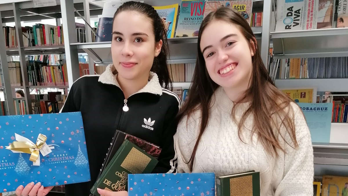 No dia 21 de dezembro, Eunice Almeida Correia e Micaela Duarte Pinheiro, alunas do 11.º ano, turma E, no ano 2022/23, e colaboradoras assíduas da biblioteca escolar, receberam, pelo segundo ano consecutivo, um cheque-prenda e livros.