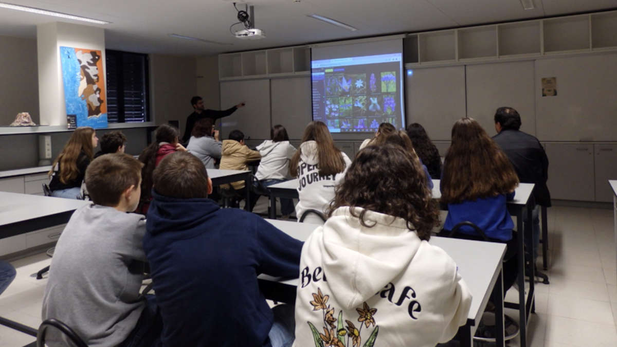 Foi no dia 30 de novembro que a nossa escola recebeu o curador do Jardim Botânico da Universidade de Coimbra, João Farminhão, e um dos jardineiros que é um elemento chave da sua equipa. Estiveram presentes 22 alunos, 3 professores e a Dª Leonor, assistente operacional, cuja atividade de apoio ao nosso viveiro é fundamental.