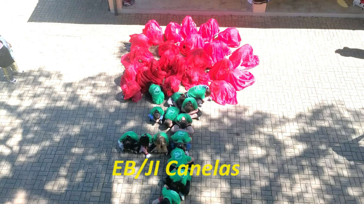 No quadro da atividade “Criar abril”, da iniciativa “Abril depois de Abril”, a comunidade educativa da EB/JI Canelas criou a representação de um cravo humano, símbolo da liberdade, contando com a participação dos alunos e crianças desta escola.