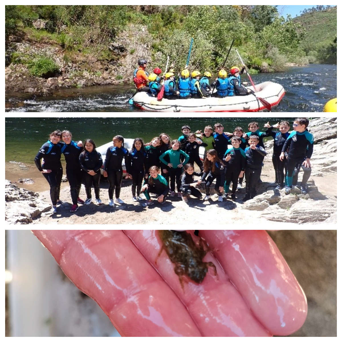 Após esta fase, a adrenalina chegou ao rubro. Alunos e professoras experimentaram uma atividade radical, o rafting, descendo, com a máxima segurança, o rio de águas bravas em barcos insufláveis, acompanhados pelos guias, Marito Silva e Luís Coelho. Antes de se lançarem ao rio, alunos e professores ouviram atentamente todos os procedimentos técnicos e de segurança e vestiram equipamentos próprios, que os protegeram e garantiram conforto térmico durante a descida. No rio, a bravura das águas foi enfrentada com muita coragem, com a colaboração dos participantes que remavam conforme as instruções recebidas. No percurso, fizemos algumas paragens para desfrutar da paisagem e da sua beleza natural e ainda tivemos a oportunidade de mergulhar e refrescar nas águas do rio.