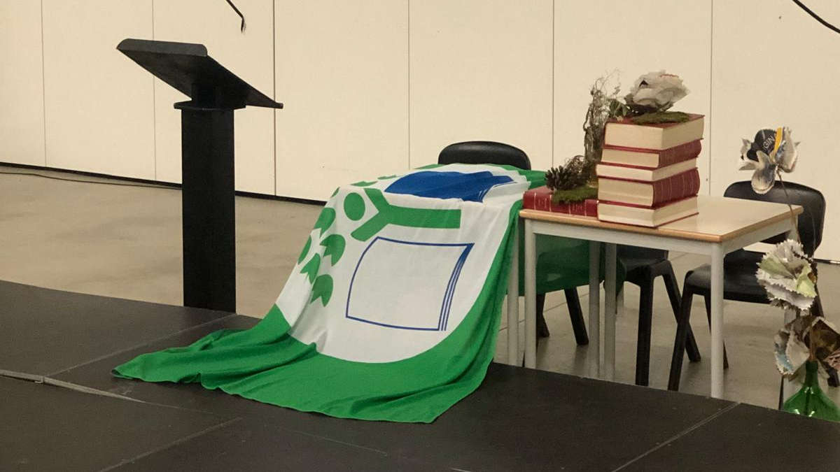 Após a exibição do filme, os alunos presentes foram convidados a hastear a Bandeira Verde Eco Escolas, um símbolo de compromisso com a sustentabilidade e a educação ambiental. A cerimónia contou com a presença e colaboração do Professor Júlio Caseiro, dos assistentes operacionais António Sousa e Vítor Rodrigues.