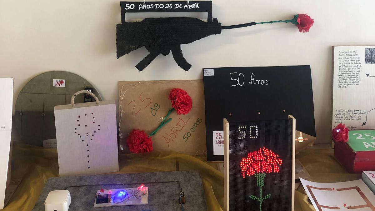 Os alunos de 9ºano associaram-se às comemorações dos 50 anos do 25 de abril, realizando cartazes "elétricos" onde aplicaram conhecimentos de Físico-Química no domínio da eletricidade.