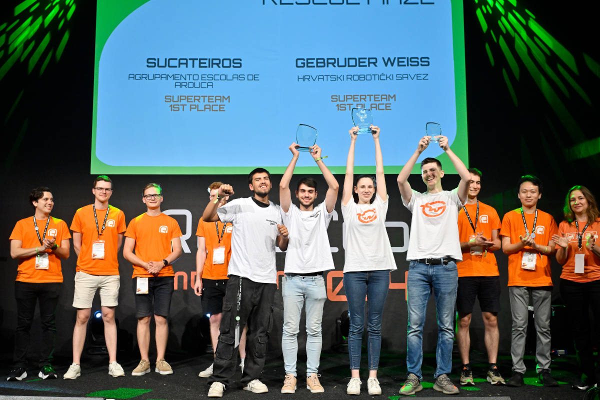A equipa composta pelos alunos Paulo Pinto e Gonçalo Santos, do 12º ano do curso profissional de Técnico de Eletrónica e Telecomunicações, e o professor Sérgio Postilhão, como mentor, conquistou o 1º prémio na categoria Rescue Maze Super Teams, no RoboCup 2024, que se realizou em Eindhoven, Países Baixos.