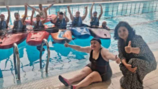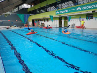 A convite do CFDDE do AEA, e tal como já aconteceu no passado, os utentes da Associação para a Integração de Crianças Inadaptadas de Arouca (AICIA), acompanhados pela professora Manuela Machado, deslocaram-se às piscinas municipais de Arouca onde participaram numa sessão de canoagem, durante o período da manhã do dia 27 de outubro.