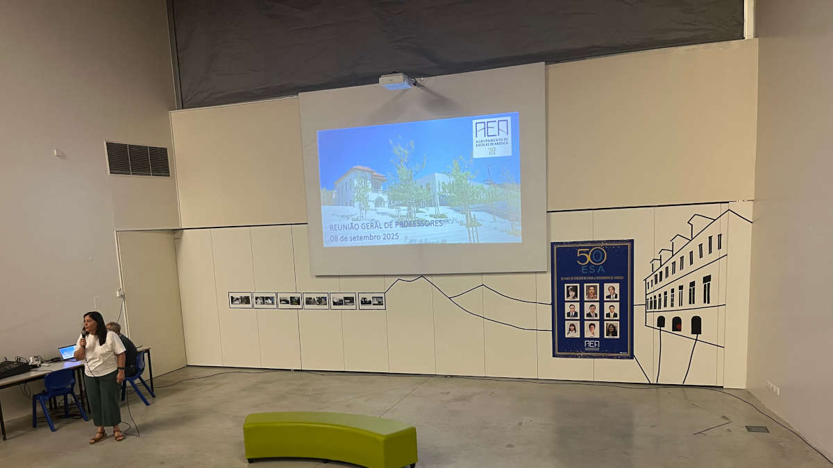 Num ano escolar em que a atividade do AEA volta a ser participada por um número significativo de novos docentes, a receção ao pessoal docente e não-docente decorreu na escola-sede e teve as presenças da vice-presidente da Câmara Municipal e vereadora do Desenvolvimento Educativo e Social, Cláudia Oliveira, e da chefe de Divisão de Desenvolvimento Social, Cultural e Turístico, Isabel Bessa. Concretizadas a primeira Reunião Geral de Professores, conduzida pela Direção, e a primeira reunião dos Departamentos Curriculares, seguiu-se um animado almoço-convívio, bem tratado pela ementa e pelo serviço assegurado pelos alunos dos Cursos Profissionais de Restaurante-Bar e Cozinha-Pastelaria da escola, sob a orientação dos técnicos especializados Jorge Rocha, Luís Braga e Nelson Silva.