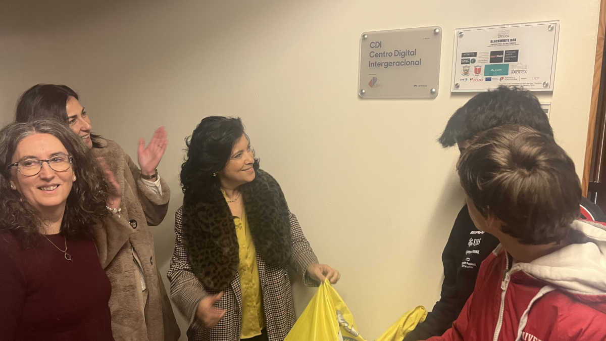 Foi num ambiente de grande satisfação que foi inaugurado, no dia 21 de novembro, na Escola Secundária de Arouca, o Centro Digital Intergeracional, um projeto idealizado pelo professor Vítor Correia, Diretor do Curso Profissional de Multimédia, e seus alunos, e agora concretizado no âmbito da iniciativa municipal do Orçamento Participativo 2025. «É um projeto que consiste basicamente em promover uma intergeracionalidade entre os mais novos, que têm um acesso mais privilegiado à tecnologia, e os mais velhos da comunidade, que não dispuseram desses recursos. É uma iniciativa de fortes virtudes, a passagem do conhecimento, da solidariedade e da troca de valores. É desafiante e motivador para os alunos porem o seu conhecimento ao serviço das pessoas seniores, ao serviço da sua comunidade», explicou o docente na sessão inaugural e de descerramento da placa comemorativa, na qual estiveram presentes alunos e professores da área de Multimédia, a Subdiretora do Agrupamento de Escolas de Arouca, professora Ana Isabel Jesus, a Presidente da Câmara Municipal, Margarida Belém, os Vereadores da Educação e do Empreendedorismo, Cláudia Oliveira e António Carlos Duarte, respetivamente, e Vânia Gonçalves, do projeto Idade Maior-Espaço Sénior do Município.