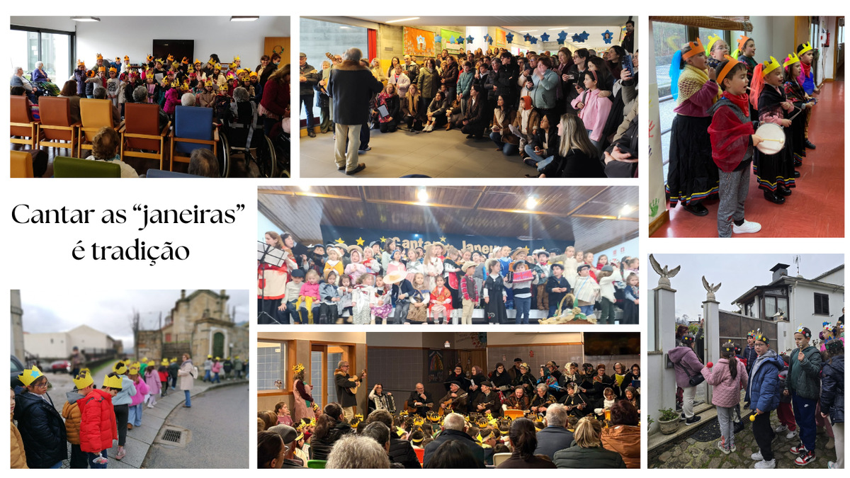 Em articulação com pais, avós e entidades, foram recolhidas e ensaiadas canções alusivas e construídos adereços e instrumentos para acompanhar. Em algumas escolas, as vozes das crianças dos jardins-de-infância e alunos do 1ºCEB percorreram os vários lugares das freguesias e serviços locais cantando as “janeiras”, para desejar um bom ano à comunidade local. Outras escolas promoveram a atividade no espaço da escola, para a qual foram convidados os pais e encarregados de educação, entre outros convidados. A EB Rossas realizou o tradicional “Cantar das Janeiras”, no Centro Cultural de Rossas, aberto à comunidade.