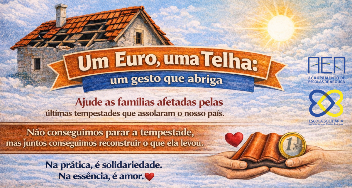 O Agrupamento de Escolas de Arouca está a promover a campanha solidária “Um Euro, uma Telha: um gesto que abriga”, com o objetivo de apoiar famílias afetadas pelas recentes tempestades que assolaram o nosso país.