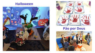 Os alunos viveram o Halloween, uma tradição típica dos países anglófonos, celebrado na véspera do Dia de Todos os Santos/"All Hallow Eve", dia 31 de outubro, com muita criatividade e entusiasmo. Em articulação com EE, foi organizada, pelas docentes de inglês, a Exposição “Witch's Cauldron”, inspirada no imaginário popular do mundo sobrenatural dos espíritos. Foram desenvolvidas oficinas artísticas de teatro, música, artes visuais, nomeadamente a oficina de arte “Monstrinhos divertidos”, com reutilização de materiais (EB Arouca), entre outras para a criação de elementos que decoraram os espaços escolares dos diferentes estabelecimentos de ensino.